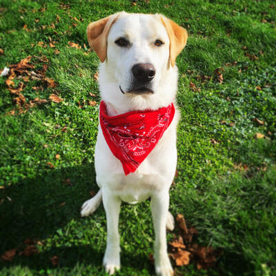 5 year old white lab ! He LOVES kids and people in general. Im finding him a new home because he nee...