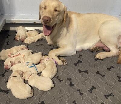 We have a beautiful litter of nine beautiful Labrador puppies that range in color from white to crea...