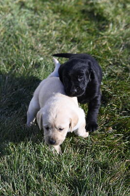 Hello, I have 7 puppies for sale. 5 Black (males) and 2 white/light yellow (females) They are 5 we...