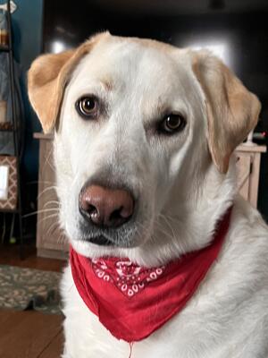 5 year old white lab ! He LOVES kids and people in general. I’m finding him a new home because he...