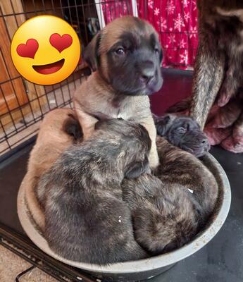 We have a beautiful litter of AKC mastiff pups. They will be 8 weeks and ready for new homes 8/27/25...