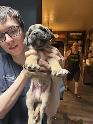 Brindle Daniel puppy looking to find his forever home. He's super sweet and loving. Great with kids ...