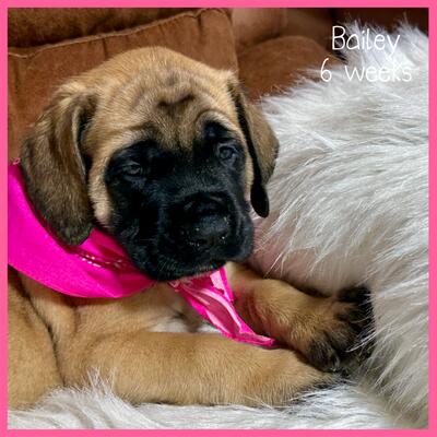 AKC English Mastiff female pup available. Up to date on vaccines and dewormed. All paperwork in hand...