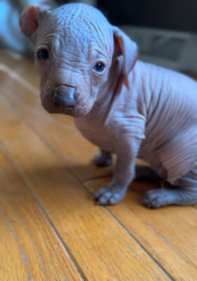 Male, he is 3/4 mexican hairless and 1/4 hairless chihuahua born 9/21/2025 ready to go aftet 11/30/2...