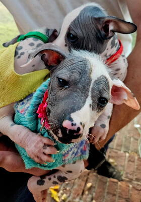 Carlita is a spotted Mariposa Xoloitzcuintli born 09/07. She is hairless variety with Intermediate/M...