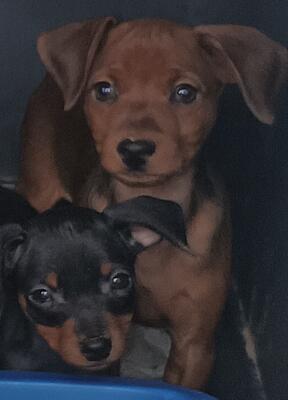 1 Stag red male miniature pinscher and 1 regular red male the 2 male miniature pinscher are mini boy...