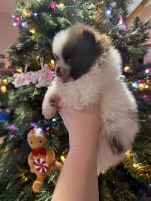 We have a gorgeous tiny tcup little boy Pomeranian He is a Blue Merle teddy bear face, very fluffy...