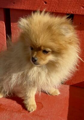 pure breed cream pomeranian male puppy, teady bear face not foxy, short legs and face, parents are f...