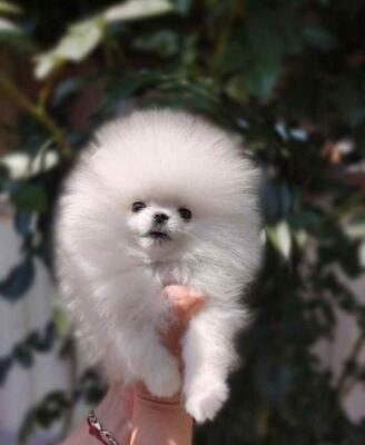 Meet your new best friend! ๐ถ This adorable White Pomeranian puppy is looking for a loving foreve...