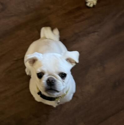 Pooka is a Small White Pug looking for a Small Pug Stud. Contact us at 616-two04-sixty 86...