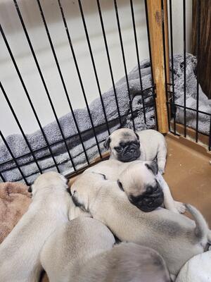 Pug puppies were born October 17. They will be 8 weeks old right before Christmas. And we’ll be re...