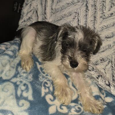a beautiful female miniature schnauzer, salt and pepper colored 16 weeks old is looking for her new ...