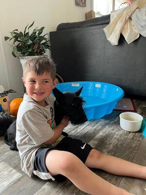 Have a Scottish terrier mixed with schnauzer very friendly loves kids can’t have anymore unable to...