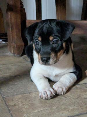 Sweet, playful mannered puppy, house trained, 9 month old female, microchipped, not altered, tan and...