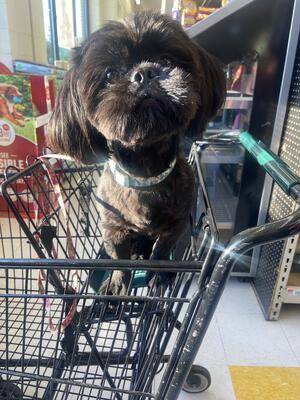 Shih Tzu male black brindle and silver he will keep his black markings on ears and face. Born 10/03...