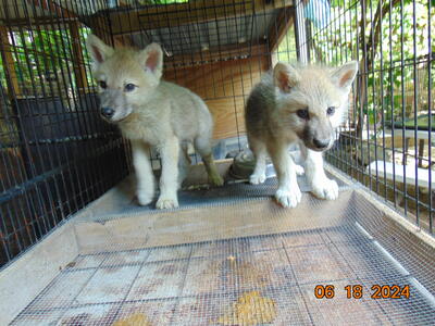 First generation hybrids. Mom is a coyote. Dad is a dog. Taking deposits for 2026 spring litter....
