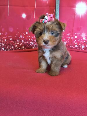 Exotic Yorkie female chocolate merle 2 months old estimate adult weight 6 pounds shots and Florida h...