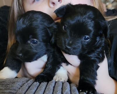 4 weeks old, 2 male and 1 solid blk female, will be ready Feb 1st, mom is cream poodle, dad is blk y...
