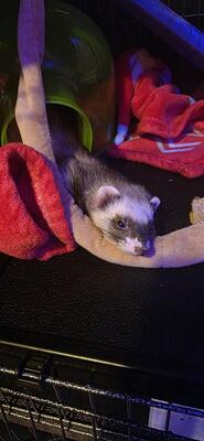 Super sweet ferret. My daughter intended to get her a friend, but never did and is going off to coll...