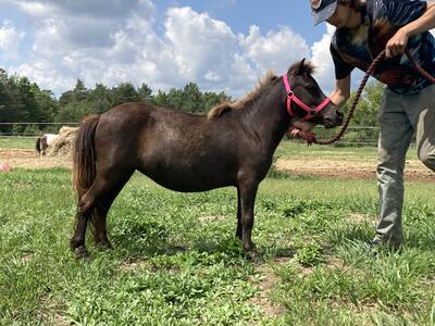 Mini horse broke with papers. Very sweet and mild but needs to be on a dry lot to control what she�...