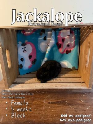 I have 1 pedigreed blue silver marten jersey wooly buck 50🥕s 1 pedigreed black silver mart...