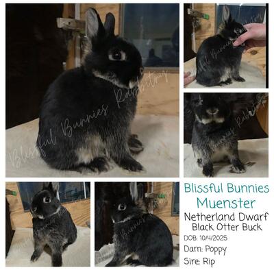 🧀Blissful Bunnies Muenster 🧀 Jr Black Otter Netherland Dwarf Buck D.O.B: 10/4/2025 Ear# MUE...