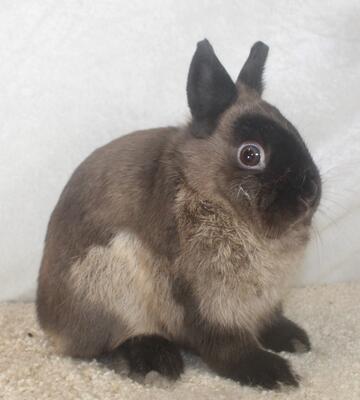 Available is a very handsome Netherland Dwarf Siamese Sable buck named Nosey. Nosey was born on 3/26...