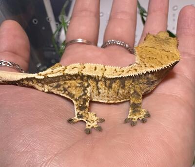 Hello I have a red base confetti Dalmatian male crested gecko his name is Pierre he is super sweet 8...