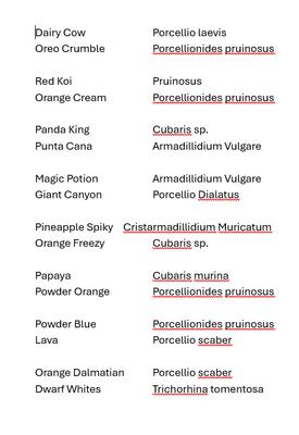 I've attached a list of isopods we work with. Prices are available at our sales counter visit www.S...