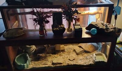 Black pastel ball python and 40 gallon bioactive front opening enclosure. Comes with everything insi...