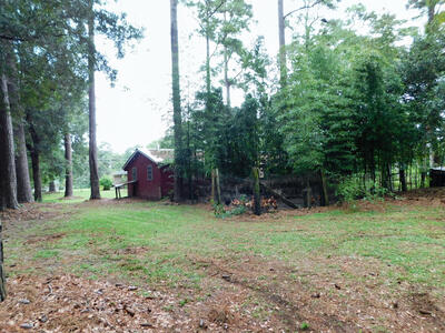 Peaceful 1-acre property in Lancaster County, VA featuring a shed with tiny-home building materials ...