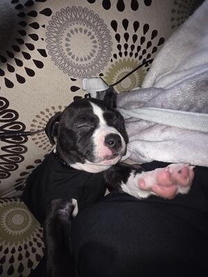 Male 7 week old xl bully/staffordshire pup. He is definitely a velcro baby and with my 10 hour days ...