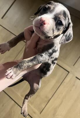 Abkc xl Merle male 1k 5 months 68 lbs 20 inches all shots/wormer utd...