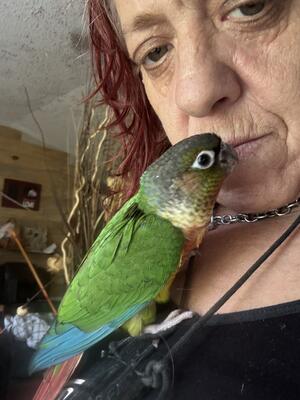 2 month old baby conure hand raised sweet and lioves to get loving...