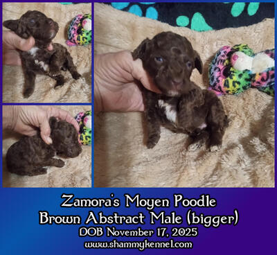 Brown merle parti and brown sable merle parti moyen sized standard poodle females. DOB Nov. 17, 2025...
