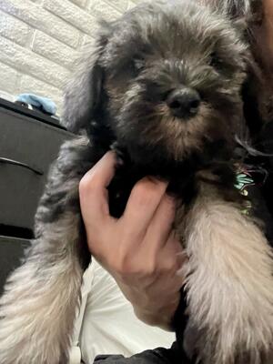 Médium size schnauzer salt and pepper color 7 weeks old eating solid food Beautiful and healthy...