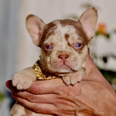 Akc - French Bulldog Puppy - Rojo & Tan Merle Female Carries Fluffy