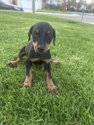 Very active and healthy about 12 weeks old standard black and rust females. Doberman that has her t...