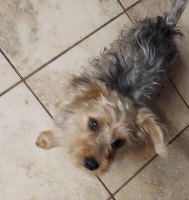 Yorkie terrier male 3 years looking for loving home very smart loving and caring he's fixed rehoming...