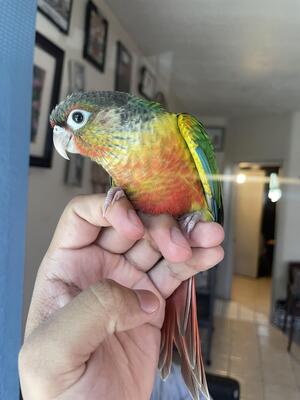 Hello there I have these Yellow-Sided conures about 2 months and 2 weeks old there very playful and ...