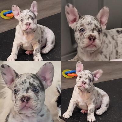 Beautiful male merel frenchie ready to find his furever