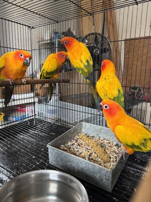 I have a Proven Pair of 3 year old Sun Conure parrots and 4 of its offspring that are close to one y...