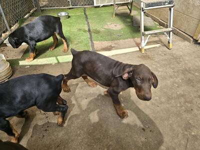 European blood line , parents are AKC registered , Docked tails and deforming first round of shots 9...