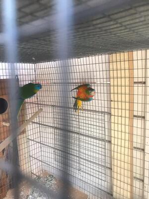 Few extra pairs turquosines parakeets for sell couple grey wings red fronted couple cinnemon and c...