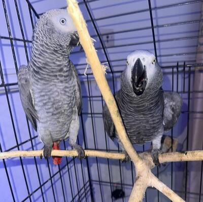 Stunning Pair of Congo African grey parrots