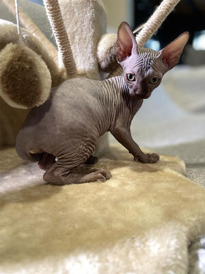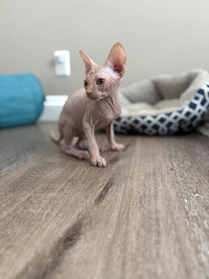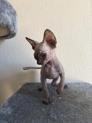 We have a sweet and playful male Sphynx kitten available! He is litter box trained, scratch post i...