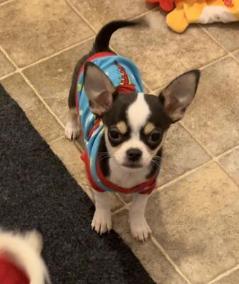 Male long hair chihuahua. 10 months old. Hes a standard size. 3 vaccines. Ready to find a family....