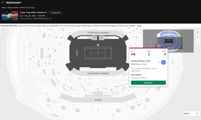 Selling a verified Ticketmaster resale ticket for the Laver Cup 2025, Session 4—this Saturday, Sep...