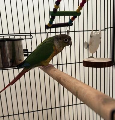 Name is Kevin. He is nice and not loudly. And also smart. Cage and toys included....