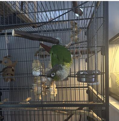 This is cheeks he is a green cheek conure. He will be a year old in January. He will wave to say hi,...
